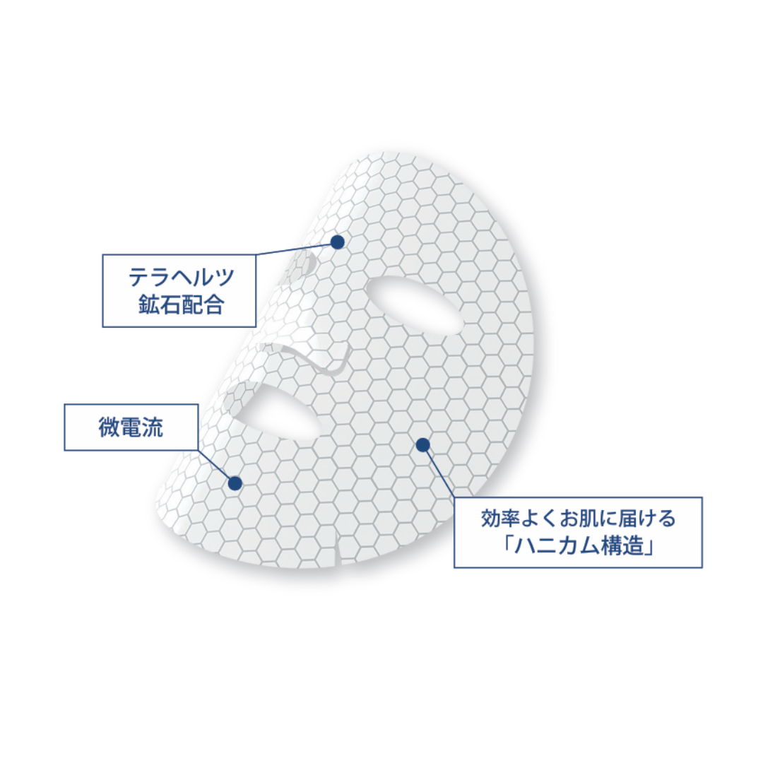 スパイダーマスクは、そのテラヘルツ鉱石を効率よくお肌に送り届けるようハニカム構造で練り込み、まるでカッサをした後のようにお肌をリフレッシュします。